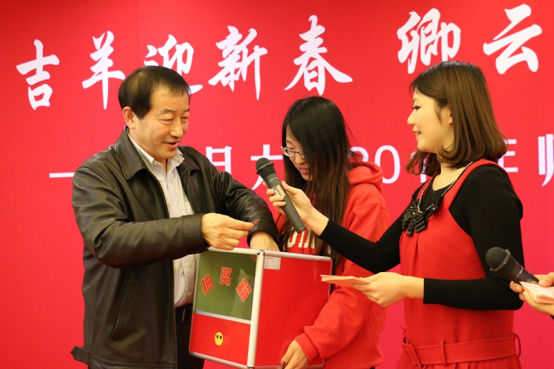 许宁生校长代表学校致新春贺词,他向全校师生致以节日的问候与祝福,并介绍了学校在人才培养方面取得的成绩和未来规划。许宁生校长表示,2015年复旦的人才培养和师资队伍建设等方面将继续加大力度,着力推进,为学生提供更好的发展平台,同时鼓励同学们不断进取,尤其要不断创新,开拓复旦学生自己的创业平台。许校长幽默风趣、务实诚恳,不时与在座教师同学互动交流,赢得阵阵掌声,不少同学拿出手机拍照留念。随后,尹冬梅副书记为留校过春节的学生代表发放慰问红包,送上新春佳节的祝福。