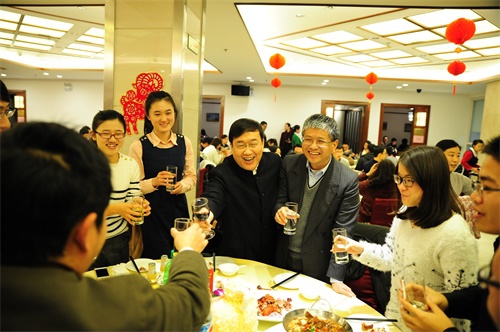 2015年2月10日,复旦大学师生迎春会在邯郸校区旦苑餐厅隆重举行,校长许宁生、常务副校长陈晓漫、校领导陈立民、陆昉、林尚立、尹冬梅与全校近600名留校师生欢聚一堂,辞旧迎新,共庆佳节。
