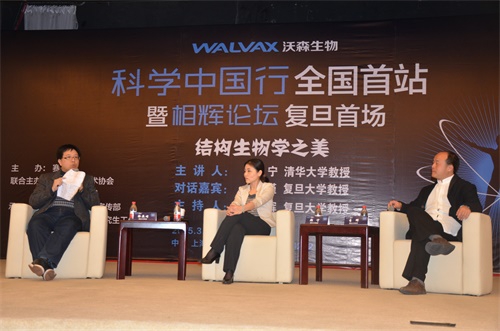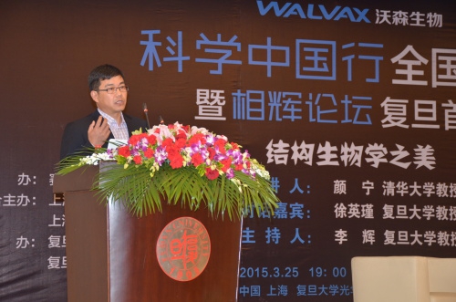 3月25日晚七点,由《赛先生》微信公众号主办,上海科学技术协会、上海百人传媒联合主办,复旦大学党委宣传部、党委研究生工作部承办的“科学中国行”全国首站暨相辉论坛复旦首场在光华楼东辅楼202报告厅举行。本次活动邀请到了“中国青年科学家奖”获得者、清华大学颜宁教授前来主讲,复旦大学哲学学院教授徐英瑾、生命学院教授李辉担任对话嘉宾与主持人。