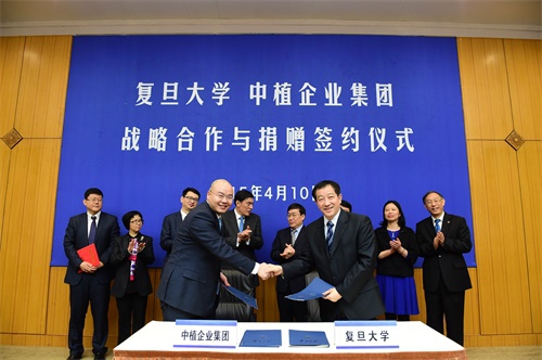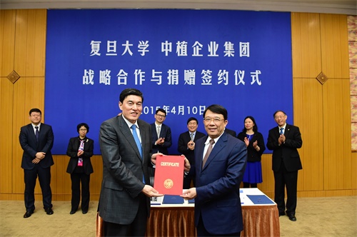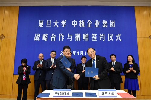 4月10日,复旦大学与中植企业集团战略合作与捐赠签约仪式在我校举行。当前,上海正加快建设具有全球影响力的科技创新中心,学校自觉行动起来,主动对接这一国家战略部署,积极聚集资源,服务上海科技创新驱动发展战略的实施,与中植企业集团达成合作协议,共同探索创新型教育方式方法。中植企业集团将为我校提供支持,用于大数据科学与技术学院建设,襄助复旦开展大数据科学与技术领域学科建设、师资建设、人才培养与研究应用。