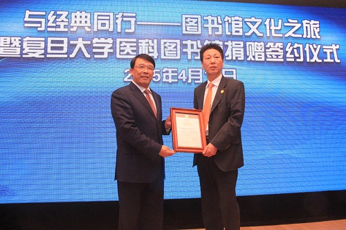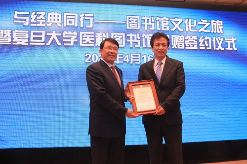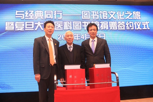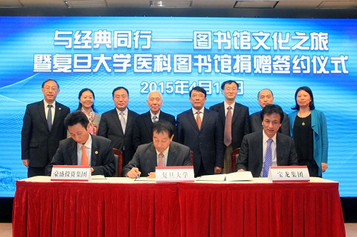 新闻中心讯 4月16日,“与经典同行——图书馆文化之旅”暨复旦大学医科图书馆捐赠签约仪式在复旦大学枫林校区举行。宝龙集团发展有限公司、上海豪盛投资集团有限公司向复旦大学各捐资人民币5000万元,支持学校建设集多功能为一体的现代化、智能化、信息化医科图书馆。按照规划,新的医科图书馆总面积近4.2万平方米,位于枫林校区中心区域,集多种功能为一体,将成为复旦师生开展医学教学科研和各类学术活动的重要场所,成为彰显复旦医学形象、展示医科发展最新成绩的重要载体。