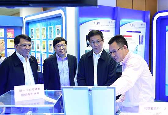 “高校是上海建设具有全球影响力的科技创新中心的重要主体、重要力量。”韩正说,我们按照中央要求加快向具有全球影响力的科技创新中心进军,不仅需要理性深入的思考,更需要一整套具有强大行动力的实施方案,这套方案要吸纳方方面面的意见建议。当前,高校和科研院所、企业、社会、政府各方面要形成合力,解决好科技成果产业化的“最后一公里”问题,突破体制机制瓶颈、营造更好的环境,让创新成果源源不断地涌现,让更多创新成果高效转化为市场认可的产品和产业,不断提高劳动生产力,真正使创新成为上海面向未来发展的主动力。