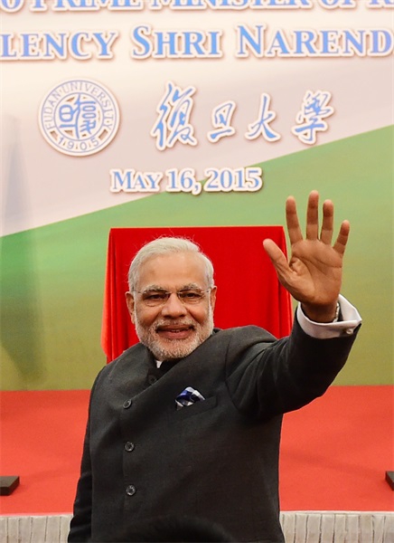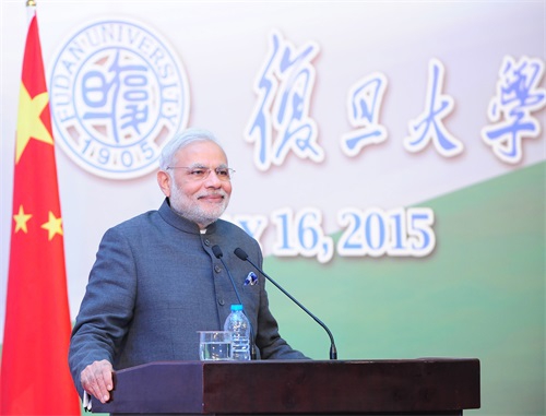 新闻中心讯 5月16日下午,印度总理纳伦德拉·莫迪(Narendra Modi)到访我校,出席甘地和印度研究中心揭牌仪式。中国人力资源和社会保障部部长尹蔚民、中国驻印度大使乐玉成、印度驻华大使康特陪同访问。上海市市长杨雄、复旦大学党委书记朱之文、校长许宁生在光华楼金厅会见了莫迪一行。会晤结束后,莫迪总理一行来到光华楼志和堂,和许宁生校长一道为甘地和印度研究中心揭牌。随后莫迪总理发表了演讲。