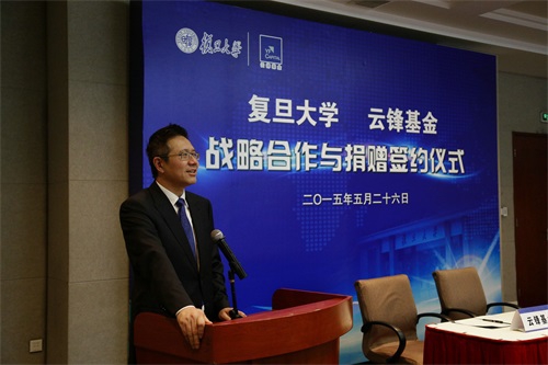 其后,虞锋校友在致辞中表示,多年来,他始终感谢复旦对他本科至研究生七年的培养,母校是其一生的精神家园,供职于云锋基金的其余复旦校友亦有同感。因此,在110周年校庆之际回馈母校,对他及云锋基金其他校友而言均具有非常重要的意义。而对于扶持母校创新方向的选择也符合云锋基金的一贯宗旨,也希望能通过这个机会,支持更多的学生开阔视野,在复旦就能系统地接受创新创业教育,云锋基金不但愿意出资支持学生创新发展,更愿意为此提供平台,促进复旦创新科研成果转化。