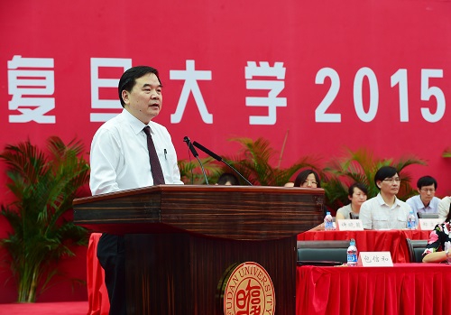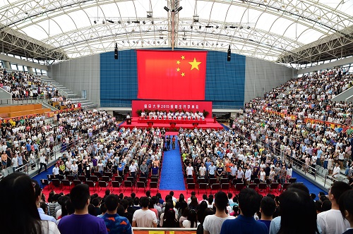 9月6日上午,复旦大学2015级研究生开学典礼在正大体育馆隆重举行。全体研究生新生参加了开学典礼。校党政领导、教学指导委员会、学术委员会、学位评定委员会负责人、新任博士生导师、教师代表以及各院系和机关部处负责人应邀出席典礼。