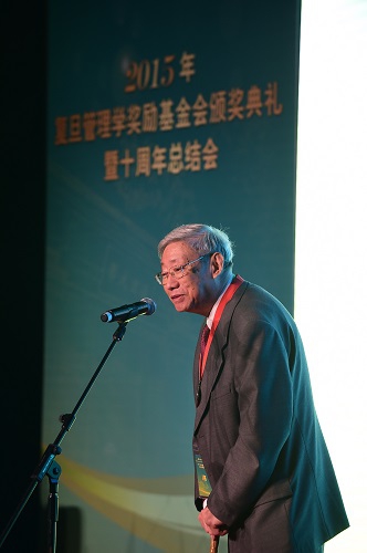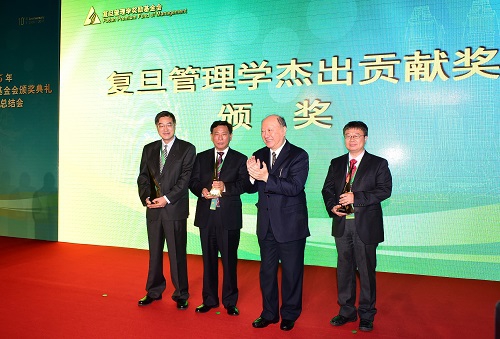 新闻中心讯 10月31日,2015年复旦管理学奖励基金会颁奖典礼暨十周年总结会在我校隆重举行。中国工程院院士、西安交通大学教授、管理学院名誉院长汪应洛获颁“复旦管理学终身成就奖”;北京交通大学交通运输学院教授高自友,中国工程院院士、合肥工业大学管理学院教授杨善林,中国科学院数学与系统科学研究院研究员杨晓光获得“复旦管理学杰出贡献奖”;阿里巴巴集团董事局主席马云获颁“复旦企业管理杰出贡献奖”。