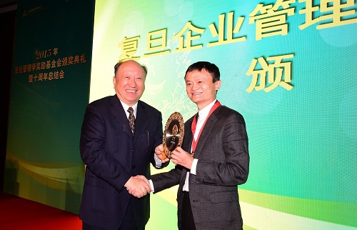 阿里巴巴集团董事局主席马云,在十多年内创建了电子商务商业生态平台系统,他所领导创建的平台商业模式在融合了东西方文化成就的基础上形成了具有特色和创新的互联网商业生态平台模式,其云计算系统技术具有世界领先性。马云近年来所倡导的互联网经济规则、生态平台模式及其开放透明共享的思想、构建商业诚信的体系和思想对我国乃至世界各国企业未来的发展将产生了重要影响,成为今年的“复旦企业管理杰出贡献奖”获奖人。