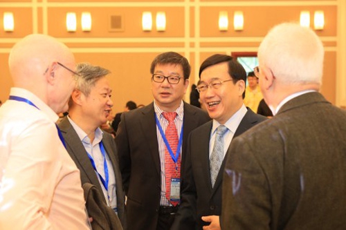 30日上午开幕式前,复旦大学校长许宁生院士来到会场和与会学者亲切交流。开幕式由2011能源化学协同创新中心主任李灿院士主持,复旦大学常务副校长包信和院士代表复旦大学介绍了我校化学学科发展概况,并对与会学者表示欢迎。2011能源化学协同创新中心主任田中群院士介绍了能源材料化学协同创新中心的概况,并指出只有通过协同创新才能发挥各个高校、研究所的优势,达到“1+1大于2”的效果。最后,大会组委会执行主席周鸣飞教授介绍了本次会议的议程,并宣布大会开幕。
