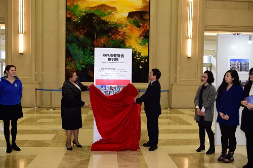 新闻中心讯 11月23日下午,拉脱维亚总理斯特劳尤马女士(Ms. Laimdota STRAUJUMA)一行访问我校,为在我校举办的“拉脱维亚风情”摄影展揭幕。我校校友、里加斯坦丁斯大学孔子学院院长白妩娜女士,我校校友、拉脱维亚驻华大使馆二秘安杰斯先生陪同斯特劳尤马总理到访。