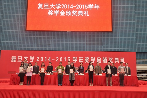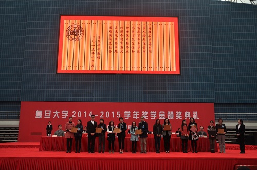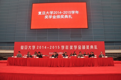 12月15日下午,“守训笃实——复旦大学2014-2015学年奖学金颁奖典礼”在正大体育馆举行。奖学金颁奖典礼作为我校学生的三大典礼之一,旨在鼓励品学兼优、奋勇拼搏的复旦学子,在全校形成一种勇攀高峰、不断创新的氛围,激励全校学生潜心向学,不断超越自身,对国家和社会有所贡献,成为无愧于时代的复旦人。