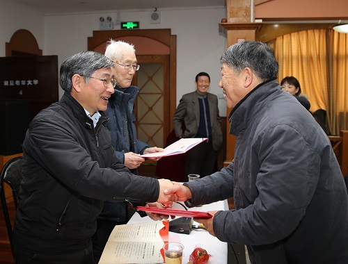 会上,党委组织部相关负责同志宣读第五批21名特邀党建组织员名单,并向新聘的法学院孙锐和公共卫生学院孙平凡两位老同志颁发特邀党建组织员证书。