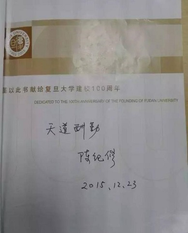 我的另一位老师何成奇教授在去世前所写的《归去告别辞》中的一句话:“在复旦50多年的教学生涯中,我真正享受到了聚天下英才而教之的幸福。我是幸运的。” 我很喜欢这个工作,复旦大学的学生绝大部分都非常优,教他们是一件很幸福、很愉快的事情。