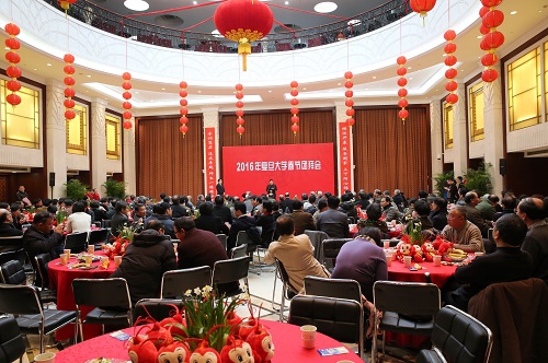 新闻中心讯 吉羊辞旧岁,金猴贺新春。1月28日上午,我校举行2016年春节团拜会。学校师生代表近300人欢聚一堂,共迎猴年新春,一阵阵欢声笑语传递着节日的喜庆气氛。