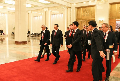 李克强强调,中国对外开放的基本国策不会改变。我们将全面加大人才引进力度,提供更多国际化、便利化服务,依法更好保护知识产权,通过集众智、汇众力,助力中国经济从过度依赖自然资源转向更多依靠人力资源和人才驱动,保持中高速增长、迈向中高端水平。