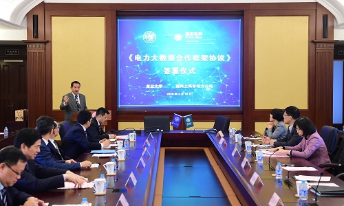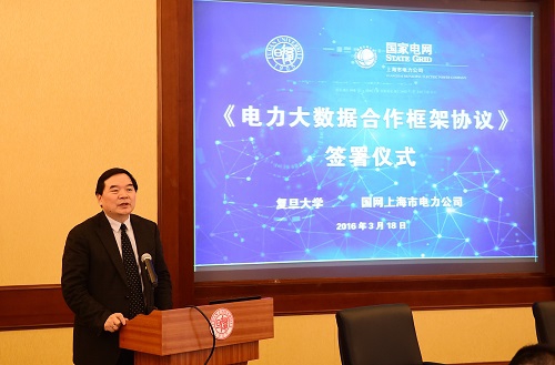 2016年3月18日,我校与国网上海市电力公司签署了电力大数据合作框架协议。中国科学院院士、复旦大学校长许宁生,国网上海电力公司总经理李桂生,中国科学院院士、复旦大学常务副校长包信和,复旦大数据两院院务委员会主任陈晓漫,市经信委大数据发展处处长张英,软件和信息服务业处副处长何炜,市发改委能源处副处长王智强,复旦大数据两院院长范剑青等出席了仪式。