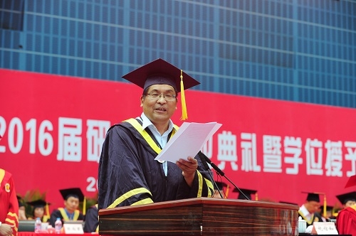 中文系陈尚君教授代表全体研究生导师发言。他以自己深厚的文学造诣以及对复旦精神的理解,用“士要有慎独精神”、“士要有家国情怀”、“士不可不弘毅”三句话,鼓励全体毕业生坚守理想,勇担责任,以自己的努力成就家庭、国家和学校。