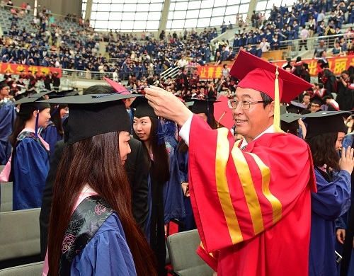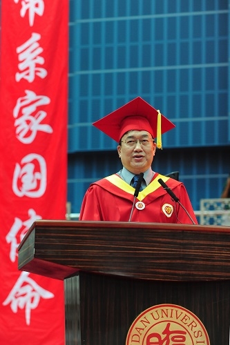 许宁生校长发表了热情洋溢的讲话。他祝贺全体毕业生圆满完成了学业,即将踏上新的人生旅程,并向毕业生的家长、导师与亲友表示感谢。对于即将毕业的复旦学子,许宁生校长提出了殷切的希望,要求同学们在走出校门后,继续保持创新的激情、学习的热情和探究的精神。他表示,复旦永远是大家共同的精神家园,“千里万里,无论何时何地,母校始终牵挂着同学们,永远是同学们最坚强的后盾!”