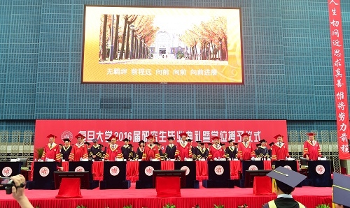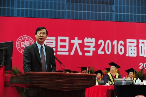 6月24日下午,复旦大学2016届研究生毕业典礼暨学位授予仪式在正大体育馆举行。校党委书记魏小鹏、校长许宁生等学校党政领导,校学位委员会委员研究生导师代表,各院系党政领导,2016届全体毕业研究生,毕业生家属等近4000人出席典礼。