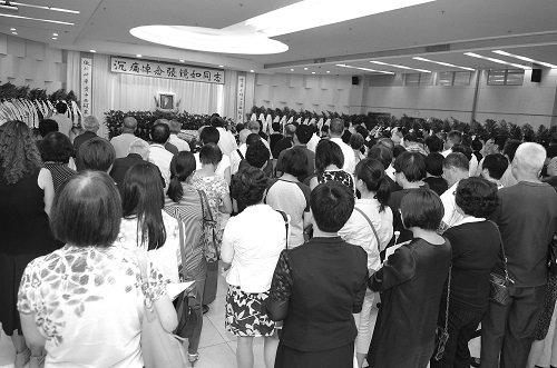 下午2时,遗体告别仪式在龙华殡仪馆大厅隆重举行。校党委副书记陈立民主持告别仪式;副校长、上海医学院院长桂永浩介绍了“张镜如教授生平”;基础医学院党委书记袁继鼎任司仪。