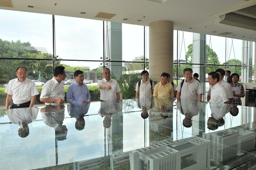 在黄小路的陪同下,许宁生一行参观了市计测院50米超长实验、超高压国家基准实验室、纳米实验室、电离辐射实验室和卫星导航中心实验室,并就合作签约仪式的具体安排交换了意见。市计测院、市特检院、市质检院、市质标院负责人参加座谈并分别介绍了机构的基本概况以及与复旦大学开展合作的情况。