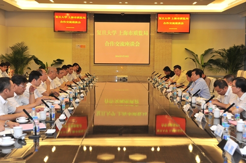 新闻中心讯 9月18日,我校与市质监局就双方开展全面战略合作、共同促进科研创新、有效服务上海科创中心建设等工作举行磋商,深入交换了意见。校长许宁生,上海市质监局党委书记、局长黄小路,副局长季晓烨、陶永华,副校长金力出席。学校办公室、科技处、信息科学与工程学院、材料科学系等院系负责人,市质监局办公室、干部人事处、科技信息处、计量处相关负责人参加会谈。