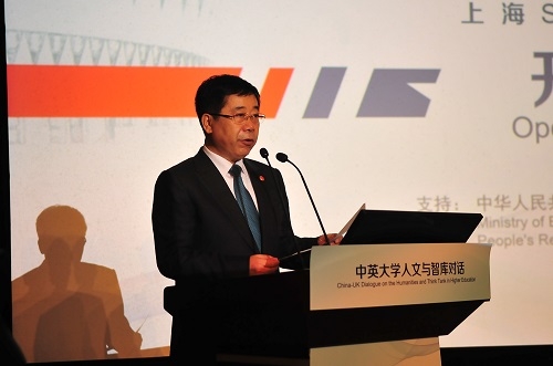 新闻中心讯 12月6日上午,作为“中英高级别人文交流机制第四次会议”的配套活动,由清华大学、复旦大学、英联邦大学联盟(Universities UK)共同主办的“中英大学人文与智库对话”在上海举行。活动获得中华人民共和国教育部及英国文化教育协会特别支持,由清华大学世界文学与文化研究院、清华大学外国语言文学系承办。教育部部长陈宝生、英国文化教育协会首席执行官邓克然(Ciarán Devane)、清华大学党委书记陈旭、复旦大学党委书记焦扬、教育部国际司司长许涛、上海市人民政府副秘书长宗明、上海市教育委员会主任苏明、英国大学校长联盟首席执行官妮古拉·丹德里奇(Nicola Dandridge)等嘉宾出席论坛。中英12所知名高校的100多名代表参加论坛。