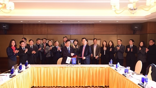 12月16日,上海论坛2017签约仪式暨第一次筹备汇报会在复旦大学举行。复旦大学党委书记焦扬会见了韩国高等教育财团事务总长朴仁国一行,对韩国高等教育财团长期以来给予上海论坛和复旦大学的支持表示感谢,希望双方能够进一步加强合作,推动上海论坛各项合作项目取得更好发展。她表示,上海论坛的发展要和上海精神结合起来,上善若水,海纳百川,以开放包容的胸怀,凝聚全球智慧,继续追求卓越。
