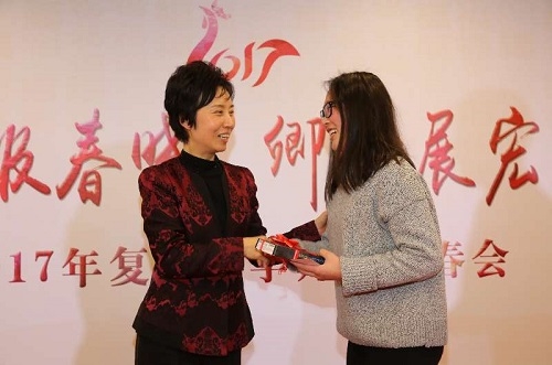 21日晚,邯郸校区的迎春会上,焦扬书记在现场发表了热情洋溢的致辞,她回顾了过去一年大家辛勤付出所取得的成绩,鼓励全体复旦师生团结一心、再接再厉,焦扬书记深情描述“不管我们的籍贯是哪里,现在我们都有一个共同的身份,那就是——(此时,现场师生不约而同的大声喊出了‘复旦人’),复旦是青年学子梦想起航的地方, 2017年注定是一个不平凡的年份,希望也成为每个人的收获年,成为复旦的发展年。”