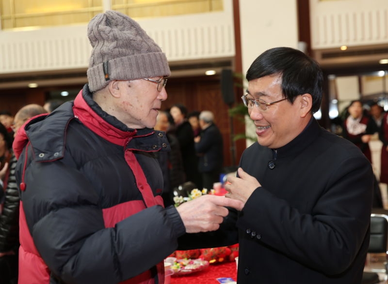 校党委书记焦扬在团拜会上发表讲话,回顾了过去一年学校的主要工作。她代表学校向各位老领导、老教师、老同志,向全校师生员工和广大海内外校友,致以新春的问候和节日的祝福,向大家拜早年。