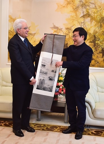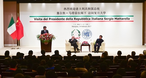 新闻中心讯 2月24日下午,正在中国进行国事访问的意大利总统马塔雷拉到访复旦大学。复旦大学校长许宁生在光华楼会见了马塔雷拉一行,双方就复旦大学与意大利教育领域友好合作进行交流。