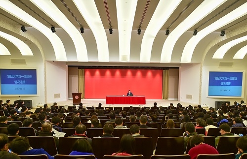焦扬在讲话中指出,“双一流”建设面向了国家未来发展的需求。争创一流大学、建设一流学科,是复旦面对国家和民族、面对前人和后人应该承担起来的责任。她要求,各级党组织要围绕推动“双一流”建设,围绕立德树人的根本任务来发力聚焦;全校师生要上下齐心,拧成一股劲,做好“双一流”建设。