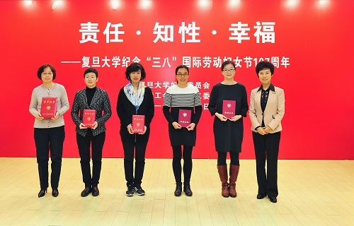 复旦大学基础医学院教授雷群英获上海市“三八红旗手标兵”称号;信息科学与工程学院教授迟楠、生命科学学院教授吕红和公共卫生学院黄葭燕获上海市“三八红旗手”称号;计算机科学技术学院教授张玥杰、信息科学与工程学院党委副书记黄芳、生物医学研究院研究员叶丹、妇产科医院主任医师鹿欣获上海市教育系统“三八红旗手”称号;复旦大学管理学院MBA项目团队获上海市教育系统“三八红旗集体”称号。大会还表彰了复旦大学“三八红旗手”50名,“三八红旗集体”16个,“先进妇女之家”15个,优秀妇女干部15名,“心系女教职工好领导”15名。