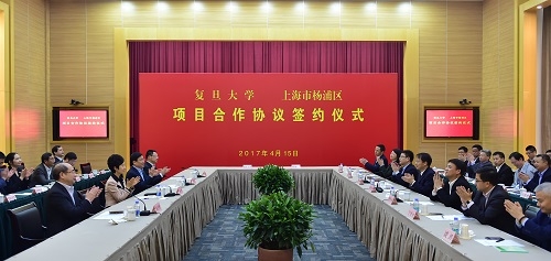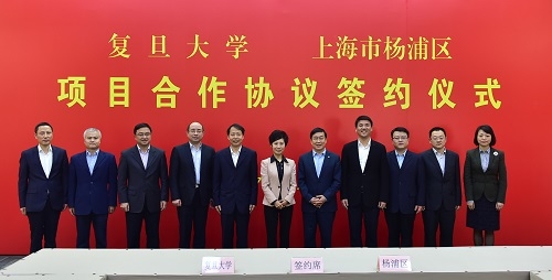 新闻中心讯 4月15日,复旦大学与上海市杨浦区项目合作协议签约仪式在杨浦举行。复旦大学党委书记焦扬,校长许宁生,杨浦区委书记李跃旗,区委副书记、区长谢坚钢等复旦大学和杨浦区领导出席了签约仪式。