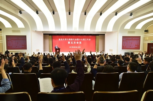 新闻中心讯 4月18日下午,复旦大学六届五次教代会暨十七届五次工代会在邯郸校区光华楼和枫林校区明道楼开幕。校党委书记焦扬等校领导出席大会。