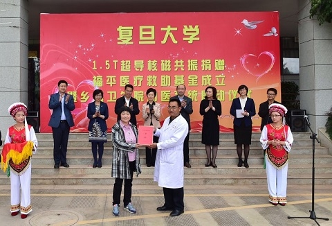 随着助医系统项目落地的,还有永平县第一台核磁共振设备落户永平县人民医院。去年,复旦医疗产业投资集团就与爱心企业赛诺威盛科技(北京)公司捐赠了一台价值600多万人民币的64层CT设备。今年,校方再次牵线搭桥,帮助永平县人民医院以510万元的成本价引进一台价值千万的1.5T超过核磁设备,并承担医技人员培训工作。