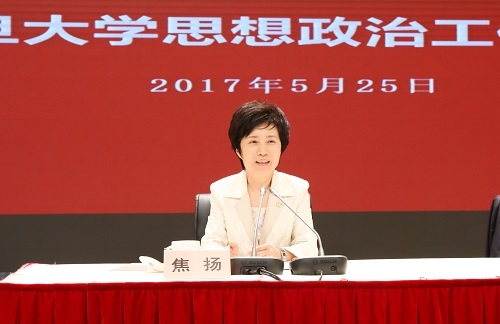焦扬指出,要认真分析师生思想行为特点,因事而化、因时而进、因势而新,不断增强思政工作的时代感、针对性和亲和力。要突出课程育人、文化育人、网络育人,形成思想政治理论课和其他各类课程、第一课堂与第二课堂、线上与线下协同育人效应。要发挥教师在立德树人中的主体作用,强化思想引领,完善导师工作体系,健全评聘考核机制,关心解决实际问题,提升教师思想政治工作水平。抓好师德师风、医德医风、校风学风、机关作风建设,坚持不忘初心、育人为本,以德为先、立德树人,为学生健康成长营造良好氛围。
