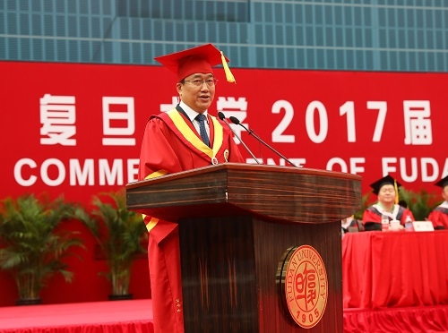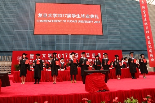 为谁盛放花满路,旦复旦兮心如故。6月23日上午,复旦大学2017届本(专)科生毕业典礼在正大体育馆隆重举行。校党委书记焦扬、校长许宁生等学校党政领导,教师代表,校友代表,各院系党政领导,部分机关部处负责人,毕业生家长代表等共同为3300余名2017届全体本(专)科毕业生送别。典礼由常务副校长桂永浩主持。