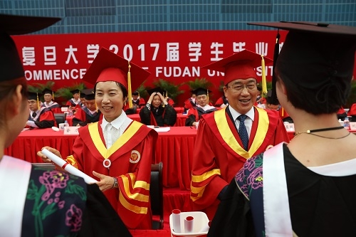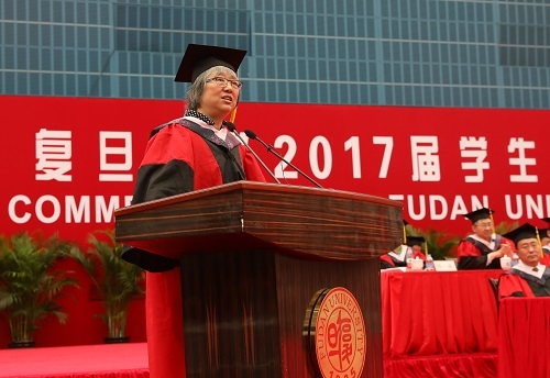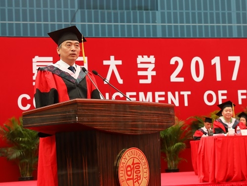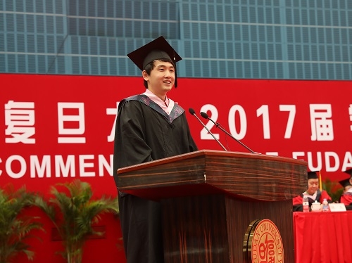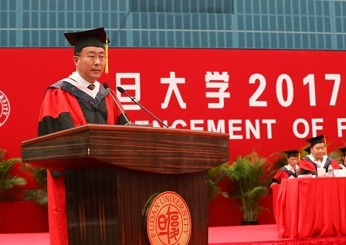 “只希望多年之后你们回到复旦校园,在曦园、燕园、相辉堂前散步时,能泛起一丝欣喜:复旦,请为我骄傲!”2017年“我心目中的好老师”、物理学系长江学者特聘教授、国家杰青周磊作为教师代表,以学长的身份鼓励毕业生们做一个纯粹的理想主义者,成为热情有爱和坚韧豁达的人。他希望复旦的毕业生们始终能够为自己的理想而坚持奋斗,以真诚和热情对待周围的一切,以乐观的心态面对未来可能遭遇的挫折和坎坷,最终成为一个令复旦骄傲的人。