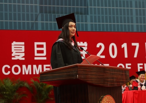 “正如我的名字一样,瓦特在泰语里是发展的意思,我选择来中国留学就是为了学习和吸收中国人渴望于发展的精神。”来自经济学院的泰国学生邱瓦特同学作为留学生代表感谢复旦。他说,复旦给予了广阔平台,使自己的人生进入了更宽广更自由的阶段,同时也在复旦收获了友谊。他表示,从踏出复旦校园的这一刻起,将不断努力推动社会、国家乃至整个世界的进步。