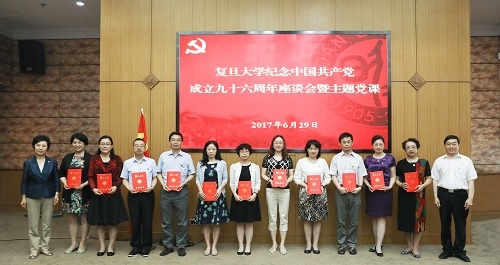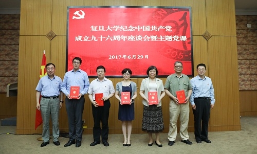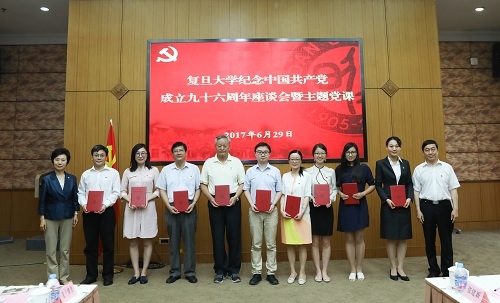 6月29日,复旦大学纪念中国共产党成立九十六周年座谈会暨主题党课在逸夫科技楼多功能厅举行。校党委常委焦扬、许宁生、桂永浩、袁正宏、周亚明出席会议。校党委书记焦扬代表校党委,向在全校各个岗位上辛勤工作的共产党员致以亲切的问候,向为党的教育事业和学校发展作出贡献的老党员、老干部、老教授、老同志们致以由衷的敬意!座谈会由校党委副书记袁正宏主持。