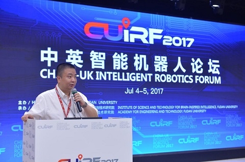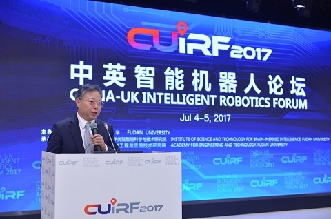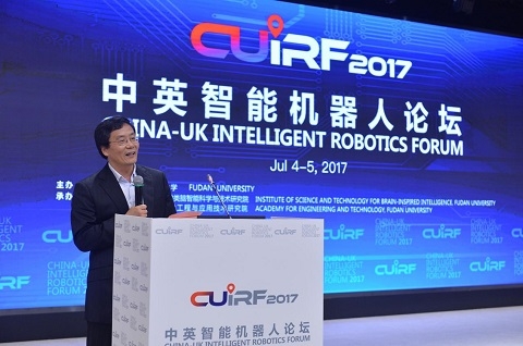 7月4日,2017首届中英智能机器人论坛在复旦大学举行。来自中英两国智能机器人与类脑人工智能领域的科学家、工程师及产业界代表,共同展望智能机器人领域发展带来的机遇和挑战,研讨感知记忆、控制决策、脑机融合等前沿与关键技术发展趋势。