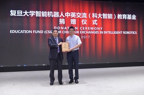 本届论坛围绕智能机器人技术这一重要的前沿领域方向,对智能机器人的发明与创新、研究进展、生物医学应用以及未来的发展进行了深入的探讨,共同展望未来人与机器共生发展的辽阔前景,探讨中英双方在该智能机器人领域的前沿合作机遇。会议期间,中英专家学者还将通过论坛研讨、圆桌会议等多元形式展开深入交流,达成了“中英智能机器人论坛上海共识”。同时,科大智能有限公司向上海复旦大学教育发展基金会捐赠人民币三百万元,用于设立“智能机器人中英交流(科大智能)教育基金”项目,三年内定向支持复旦大学类脑科学与技术研究院实施智能机器人方向学生交流培养计划,每年资助10名。
