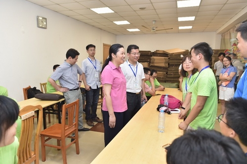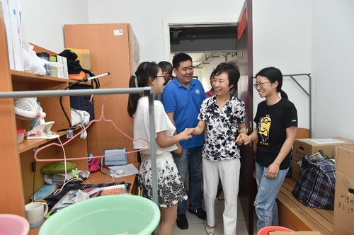 搬迁当天,焦扬书记到江湾学生生活园区看望搬迁学生、志愿者和相关工作人员,并走访学生宿舍,了解宿舍楼内淋浴改造情况和江湾园区配套设施情况。她亲切询问同学们入住后的体验,有什么困难和需求。当了解到理科院系的多数研究生假期不回家,留在实验室进行科研工作,还经常工作到晚上十一二点时,她特别叮嘱同学们注意高温防暑,做到劳逸结合,合理安排实验进度,尽量避免熬夜。