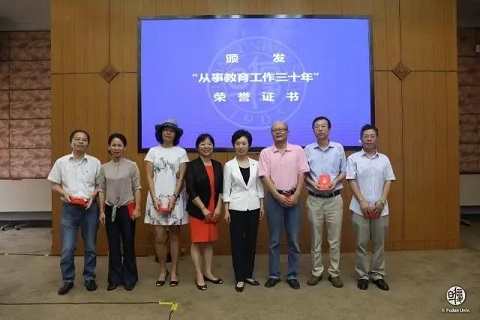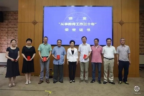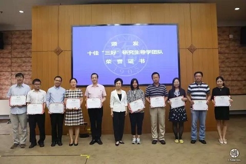 今年我校有137名教职工从事教育工作满30年。他们长期弘扬“尊师重教”的精神,对学校作出了非常重大的贡献。同时,导师与研究生所组成的导学团队在学校研究生培养和科研创新中,起着非常重要的作用。为了发挥导学团队的育人功能、促进导学关系和谐、培养良好的学风,学校今年开展了首届十佳“三好”(学术研究好、人才培养好、文化建设好)研究生导学团队评比。本次会议对执教三十年的教师代表、从事教育工作三十年的职工代表和首届十佳“三好”研究生导学团队进行了表彰。