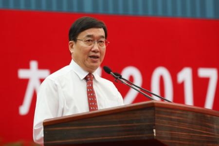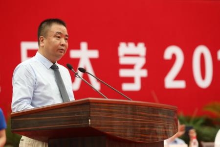 复旦大学校长许宁生在讲话中代表全校师生员工向全体研究生新生的到来表示热烈欢迎。他希望各位研究生以勇争一流的精神投入研究生生涯,在复旦“一流大学和一流学科”建设的征程中,留下属于自己的独特一笔,做一流的学问,促社会的进步。