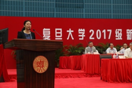 9月8日上午,复旦大学2017级本(专)科新生开学典礼在正大体育馆隆重举行,来自世界各地的3800余名新生参加了开学典礼。校党政领导,两院院士、文科特聘资深教授、教学名师代表,复旦学院、五大书院院长,2017级本科生书院导师,各院系及有关部处负责人、教师代表,以及全国各地部分中学校长代表等出席开学典礼。