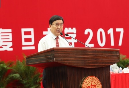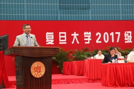 最后,复旦大学校长许宁生发表讲话,向2017级新生表示热烈欢迎,寄语新生“严以律己才能成大器”。