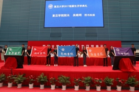 典礼由复旦大学党委副书记许征主持。在庄严的升国旗、奏国歌仪式之后,复旦学院院长、哲学学院教授吴晓明为来自志德、腾飞、克卿、任重、希德五大书院的新生代表授书院旗。
