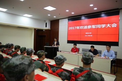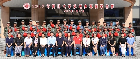 9月17日下午,复旦大学2017年欢送参军同学大会在美研中心108会议室隆重举行。校党委副书记许征、校武装部负责人、党委学生工作部有关负责人出席欢送大会,参加欢送会的还有部分新兵家属、有关院系老师及学生代表百余人。