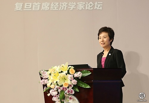 复旦大学党委书记焦扬、复旦大学经济学院院长张军在开幕式上致辞。焦扬向前来出席“复旦首席经济学家论坛”的领导、专家和嘉宾表示欢迎,向长期关心论坛发展的校友和各界人士表示感谢。在致辞中,她介绍了论坛的举办历史和背景。同时表示,随着中国对世界经济的影响日趋深远和广泛,建构中国人自己的经济学学科体系、学术体系和话语体系已刻不容缓。作为一所国家重点建设的大学,特别是在人文社会科学领域有悠久历史、深厚底蕴、扎实基础的大学,复旦大学有责任更加主动地服务中国特色哲学社会科学建设,担负起为党和人民述学立论、推进理论创新的时代重任。她期望论坛在社会各界的共同关注下,在经济学家的传承发展下,在广大校友的热心支持下,越办越好,真正成为沟通经济学界业界的桥梁纽带、研讨中国经济发展问题的思想智库、复旦服务国家和地方发展的重要品牌。
